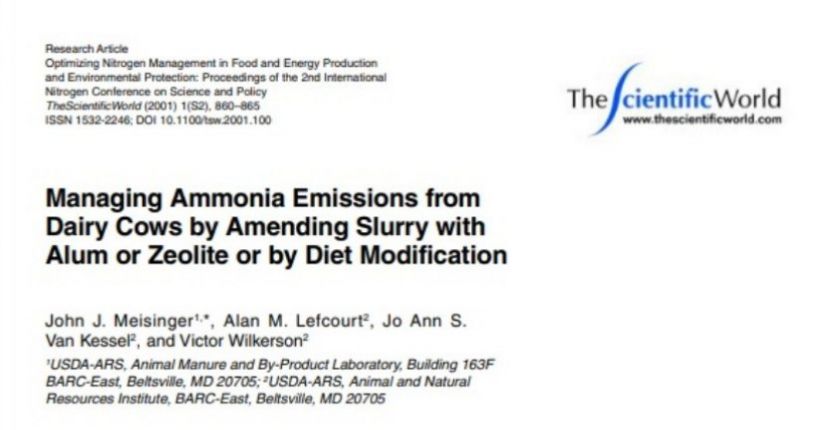 Managing Ammonia Emissions from Dairy Cows by Amending Slurry with Alum or Zeolite...